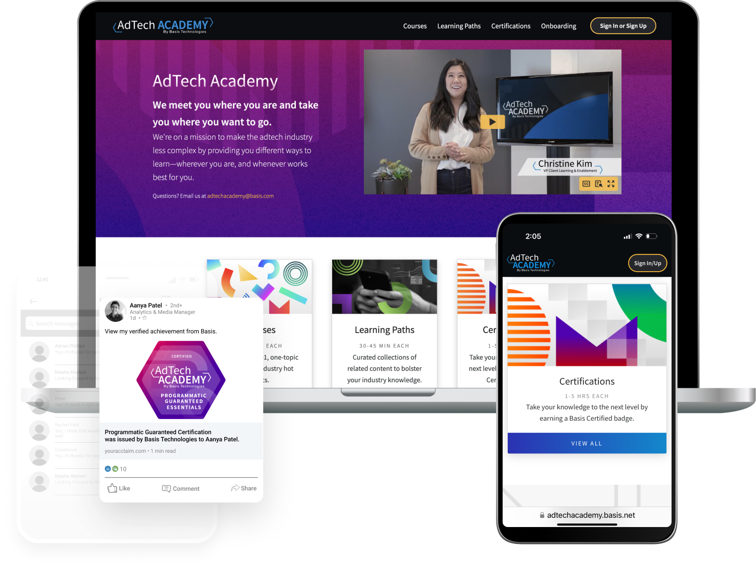 AdTech Academy is an award-winning educational program of a B2B tech company. It offers a rich curriculum featuring on-demand courses, virtual live sessions, and in-person workshops.